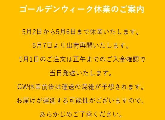 初回10%OFFクーポン「 E1M2P3 」ゴールデンウィーク休業5/2-5/6